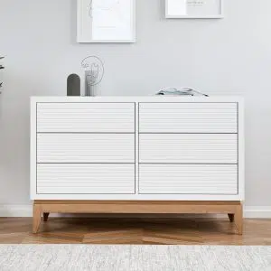 הקונסולה כוללת 2 מגירות הנפתחות עם טריקה שקטה, המאפשרות לך לאחסן בהן פריטים שונים ולשמור על סדר וארגון בחלל הסלון שלך. המגירות מעוצבות בצורה מינימליסטית ומתאימות למראה המודרני והמעניין של הקונסולה.