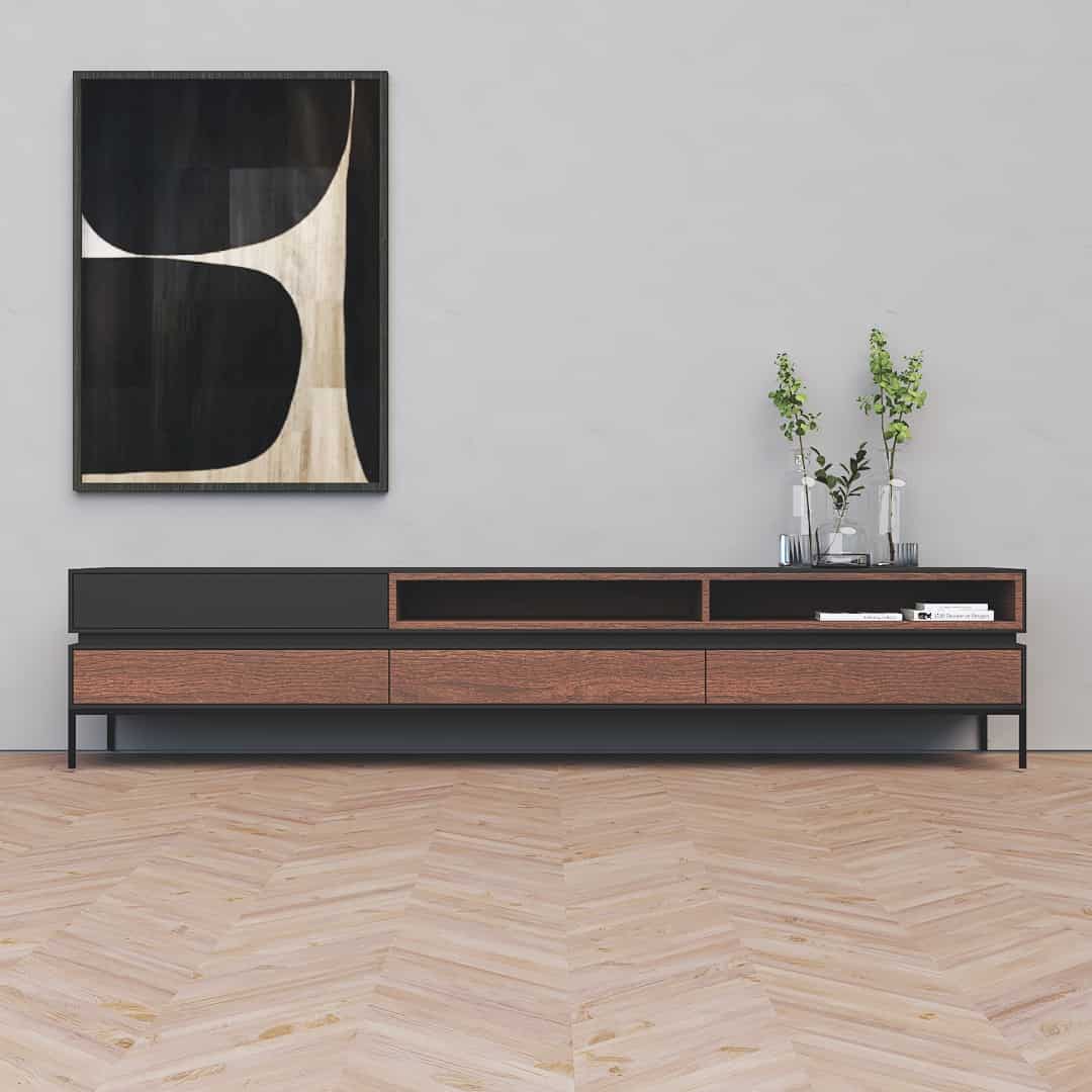 בעת אספקת הרהיט ניתן לבקש מהמובילים לקדוח פתח אחורי בגב המזנון עבור כבלי המדיה,