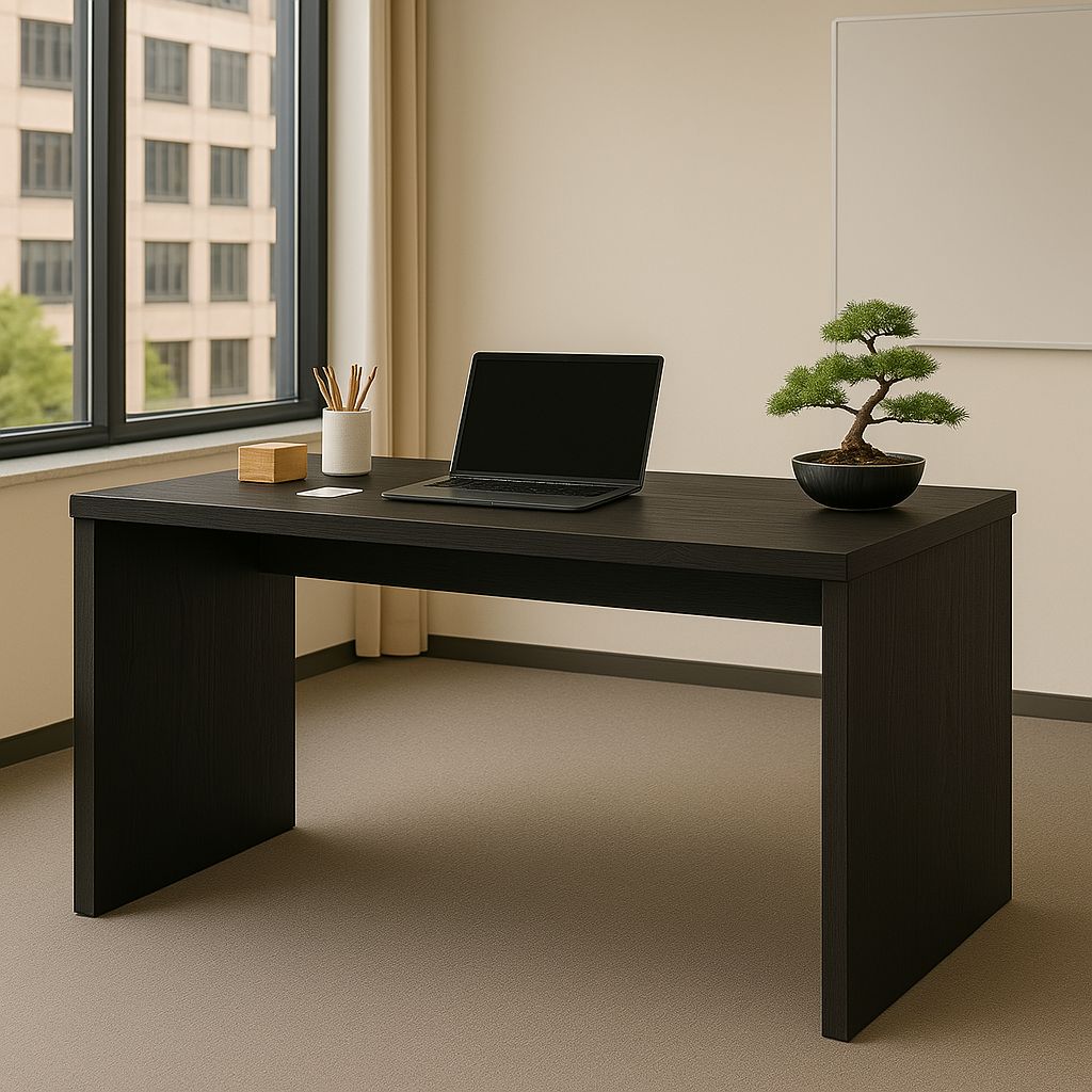 שולחן עבודה מודרני ומינימליסטי עשוי מעץ איכותי בחיפוי פורניר , המשלב בין עיצוב אלגנטי לפונקציונליות גבוהה. השולחן מעוצב עם קווים נקיים ורגלי מתכת חזקות ליציבות מקסימלית, ומתאים לחללי עבודה ביתיים ומשרדיים כאחד. הגימור השחור עם טקסטורת העץ מוסיף עומק ויוקרה, ומשתלב בצורה מושלמת עם סגנונות עיצוב מודרניים ותעשייתיים.