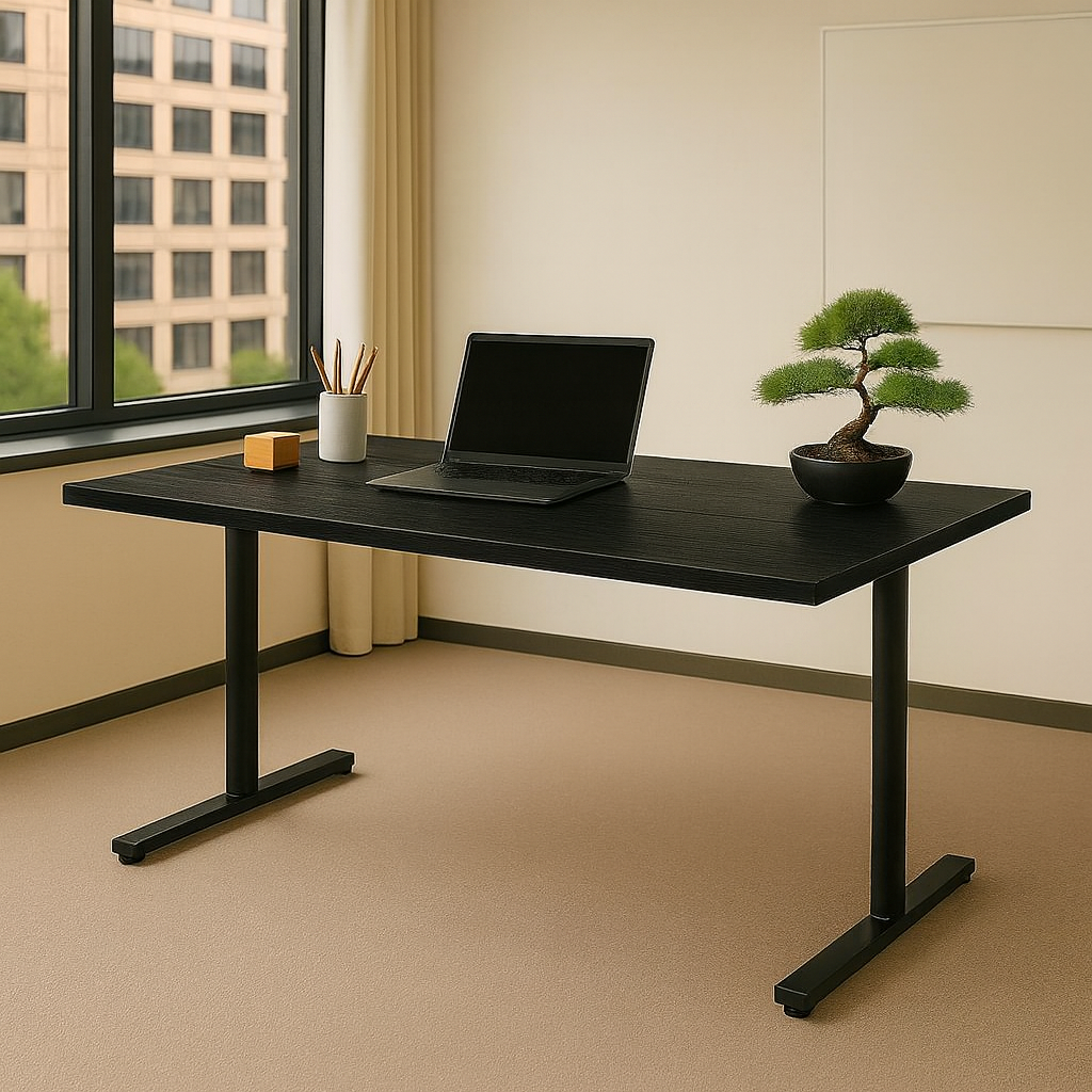 שולחן עבודה מודרני ומינימליסטי עשוי מעץ איכותי בחיפוי פורניר , המשלב בין עיצוב אלגנטי לפונקציונליות גבוהה. השולחן מעוצב עם קווים נקיים ורגלי מתכת חזקות ליציבות מקסימלית, ומתאים לחללי עבודה ביתיים ומשרדיים כאחד. הגימור השחור עם טקסטורת העץ מוסיף עומק ויוקרה, ומשתלב בצורה מושלמת עם סגנונות עיצוב מודרניים ותעשייתיים.